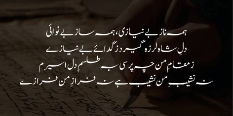 Ba mata-e-khud che naazi ke ba shehar-e-dard-mandan