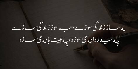 Zindagi ka naghma ishq ke soz aur tadap ke baghair adhoora hai, aur yehi soz zindagi ko tarteeb aur husn ata karta hai. Iqbal farmate hain ke ishq ki aag jab jalti hai to wo zahiri maslahaton ko be-dardi se jala kar raakh kar deti hai, lekin isi raakh se ek naya aur be-tab walwala janam leta hai. Ye soz-o-saaz ka tasalsul hi hai jo insaan ko jumood se nikal kar musalsal tag-o-do aur takhliq ke raste par daal deta hai.