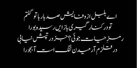 Ay insaan! Apni faryad aur dil ki pukar se is duniya ke baagh mein qayamat ka hangama barpa kar de (yani apni shayari se soyi hui qaum ko beidar kar de). Jab tak tere seene mein saans baqi hai, nala-o-faryad aur haq ki pukar ko mat chhod. Khamoshi maut hai aur apni awaaz buland karna hi asal zindagi hai.