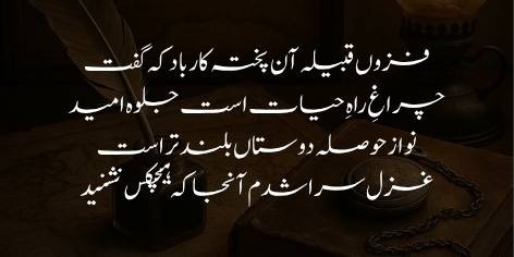 May the tribe of that wise man increase who said: “The glimmer of hope is the lamp for the path of life.” Since my song was far beyond the courage and capacity of my friends, I sang my ghazals in a place where there was no one to listen.