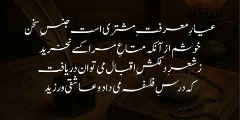 اقبال فرماتے ہیں کہ کلام کی قدر و قیمت دراصل خریدار (پڑھنے والے) کی عقل اور شعور کو پرکھنے کا پیمانہ ہوتی ہے۔ اگر کوئی میرا کلام نہیں خرید رہا (نہیں سمجھ رہا) تو میں خوش ہوں، کیونکہ اس کا مطلب ہے کہ عام لوگ ابھی اس شعور تک نہیں پہنچے جو میرے کلام کا تقاضا ہے۔ غزل کے آخری شعر میں وہ اپنی شخصیت کا نچوڑ پیش کرتے ہیں کہ اقبال کی شاعری گواہ ہے کہ وہ صرف خشک فلسفی نہیں تھا جو صرف دلیلیں دیتا ہے، بلکہ اس نے فلسفے کی گتھیاں سلجھانے کے ساتھ ساتھ عشق کی تڑپ اور سوز و گداز کو بھی اپنائے رکھا۔ وہ عقل اور عشق کا ایک حسین سنگم ہے۔