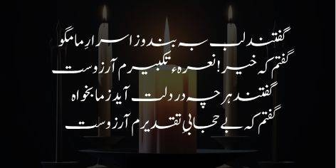 Guftam ki be-hijabi-e-taqdeeram aarzoost