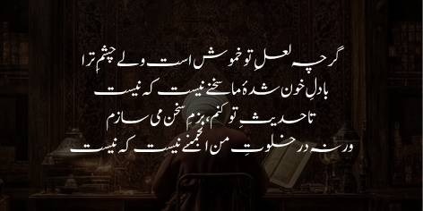Garche laal-e-tu khamosh ast waley chashm-e-tara,