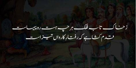 Qadam kusha-ay ki raftar-e-karwan teez ast