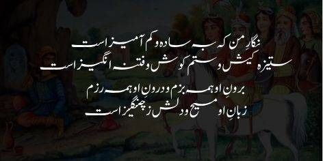 نگارِ من کہ بہ سادہ و کم آمیز است