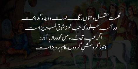 فرہاد کہتا ہے کہ عشق میں میری عقل ختم ہو گئی اور دیوانگی نے مجھ پر غلبہ پا لیا ہے، میری آنکھیں آنسو بن کر بہہ رہی ہیں۔ اے محبوب! اب تو جلوہ دکھا کیونکہ میرا شوق انتہا کو پہنچ چکا ہے۔ وہ ایک تلخ حقیقت بیان کرتا ہے کہ اگرچہ میں نے اپنی محنت (تیشے) سے پہاڑ کاٹ کر رکھ دیا، یعنی میں نے اپنا کام مکمل کیا، مگر زمانہ اب بھی اس ظالم پرویز (سرمایہ دار/بادشاہ) کا ساتھ دے رہا ہے اور محنت کش اب بھی محروم ہے۔