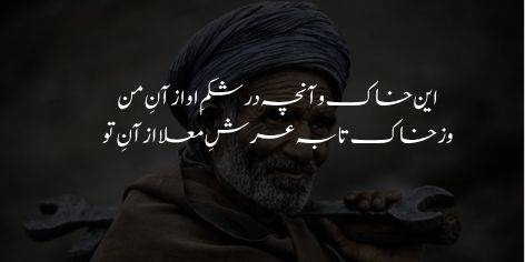 Lohey kay karkhanay ka shor-o-ghul (mushaqqat) meray hissay mein hai aur kaleesa kay baajay ki dilkash dhunain teray liye hain. Woh darakht jis ka phal bech kar badshah ko tax diya jata hai woh mera hai, jabkeh jannat kay baghat aur Sidra o Tuba kay khayali darakht teray liye hain.