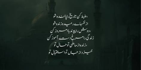 Ay apni haqiqat se be-khabar insan! Kya tu samajhta hai ke tareekh mahz chand qisse kahaniyon ka naam hai? Hargiz nahi! Tareekh to wo quwwat hai jo qaum ki rooh ko jala bakhshti hai aur millat ke wajood mein a’saab ki tarah kaam karti hai. Ye tumhein ek kund churi ki tarah tajurbaat ki “saan” par charhati hai taake tumhari himmat aur aql tez ho jaye, aur phir tumhein zamane ke challenges ka muqabla karne ke liye tayyar kar deti hai. Tareekh humein maazi ke tajurbaat se seekh kar haal mein jeena sikhati hai.