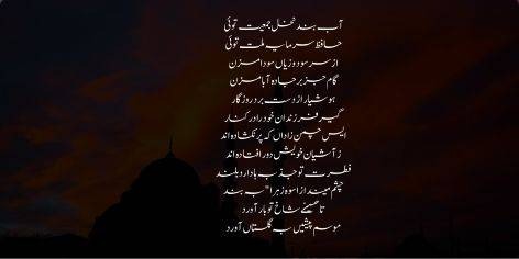 Bar jabal rakhsheed-o-dar sahra tapeed