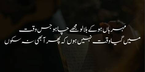 Apni pasandeeda shayari ko comments mein share karein, ya apne pyaar ko ek khoobsurat paigham bhej kar is safar ko aur bhi yaadgar banaen or aesi or shairi love poetry urdu py explore krain!