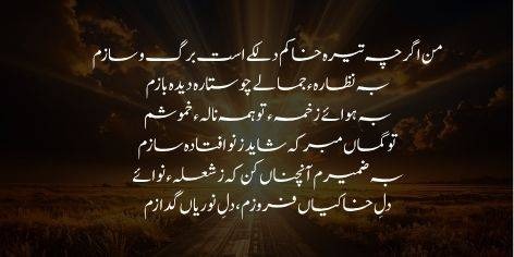 Dil-e-khakiyan farozam, dil-e-nooriyan gudazam