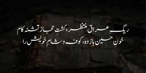 The sands of Iraq are waiting, the fields of Hijaz are thirsty; restore the blood of Hussain to your Kufa and Syria (the Muslim world).