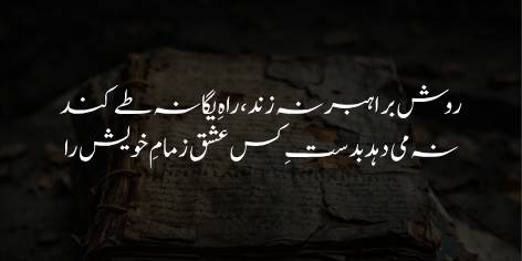 It (Love) does not follow the path of a guide; it travels a unique path; Love does not surrender the reins of itself into the hands of anyone.