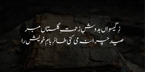 Zi geeswaan ba-dosh-e-zahmat-e-gulistan mabar,