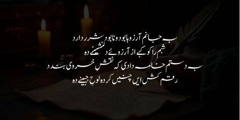 Ba jaanam arzoo-ha bood o na-bood sharar daradh
