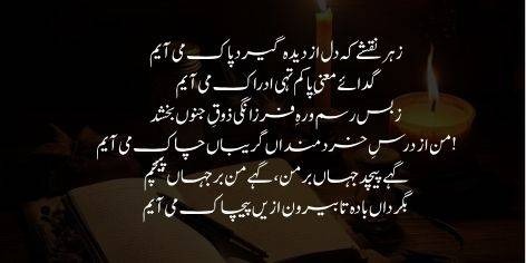 Man az dars-e-khird-mandan gareeban chaak mi ayem!