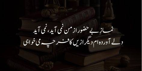 اے میرے مالک! مجھ سے ایسی نماز (عبادت) ادا نہیں ہو سکتی جس میں تیری یاد اور دل کی حضوری شامل نہ ہو (ایسی رسمی عبادت میرے بس کا روگ نہیں)۔ میں نے اپنی روایتی نیکیوں کے بجائے اپنا تڑپتا ہوا دل تیرے حضور پیش کر دیا ہے جس میں تیری ہی محبت بسی ہے۔ اب تو اس “بے نماز کافر” (عشق میں ڈوبے ہوئے انسان) سے اس کے علاوہ اور کیا چاہتا ہے؟
