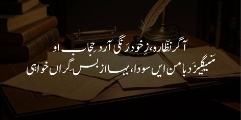 Agar nazara, zi khud-rangi aarad hijab-e-oo,