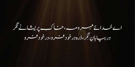 Dar bayaban-e-negar, zarra dar khud faro, dar khud faro.