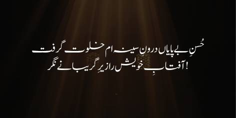 Husn-e-bepayan daroon-e-seena-am khalwat gereft,
