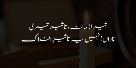 Ae nadan insan! Tu jo ye samajhta hai ke tere halat aasmani gardishon ya sitaron ke asar se kharab hain, to ye teri bhool hai. Haqiqat mein tera zamana waisa hi banta hai jaisa tera apna asar aur teri apni mehnat hoti hai. Tu sitaron ka muhtaj nahi hai, balkay agar tu chahe to apni Khudi ke zor par zamane ka rukh badal sakta hai.