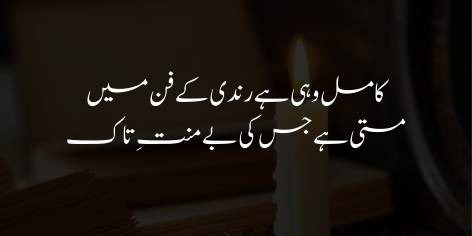 عشق اور مستی کے فن میں وہی شخص کامل اور سچا ہے جسے مست ہونے کے لیے انگور کی شراب (مادی سہارا) کی ضرورت نہ ہو۔ جس کی مستی اور سرور اس کے اپنے ایمان اور اپنی خودی سے پیدا ہو، وہی اصل مردِ آزاد ہے۔ اقبال یہاں اس روحانی مستی کی بات کر رہے ہیں جو کسی ظاہری نشے کے بجائے اللہ کی محبت سے حاصل ہوتی ہے۔