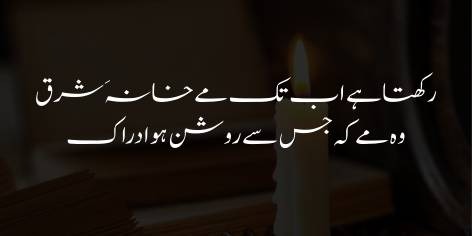 Mashriq (Islami dunya) ke pas aaj bhi wo ruhani sharab (marfat aur hikmat) mojood hai jis se insan ki aql aur samajh roshan ho jati hai. Agarchay bazahir hum zawal ka shikar hain, lekin wo fikr aur iman ka sarchashma ab bhi baqi hai jo insan ko madi andheron se nikal kar marfat ke noor ki taraf le ja sakta hai.