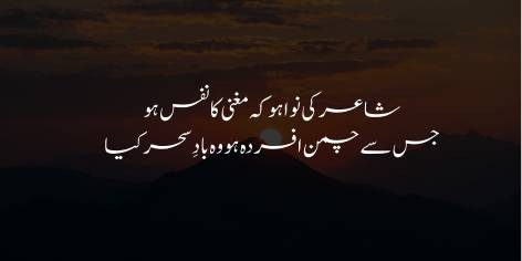 Khwah woh shayar ki awaaz ho ya kisi gane wale ka naghma, agar is se zindagi ke baagh mein tazgi aane ke bajaye afsurdagi aur murjhahat paida ho, to woh fun us subah ki hawa ki tarah hai jo phoolon ko khilane ke bajaye unhein murjha de. Sacha fun wahi hai jo sunne wale ke dil mein umang aur tazgi paida kare.