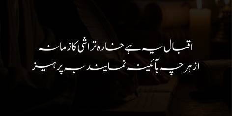 Ae Iqbal! Ye dour “Khara Tarashi” (sakht patthar kaatne) ka hai, yani ab sakhti, himmat aur paharon jaisa irada chahiye, na ke aaeine jaisi nazakat. Farsi ka ye misra naqal karte hue Iqbal kehte hain ke jo bhi cheez tujhe aaeine ki tarah nazak aur dikhawe ki cheez lagay, uss se parhaiz kar. Ab waqt hai ke apne andar lohay aur patthar jaisi mazbooti paida karo taake zamane ki sakhtiyon ka muqabla kiya ja sakay.