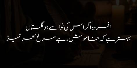 Agar kisi shayar ya muazzin ki awaz (murgh-e-sehar khaiz) se qaum ka gulistan bedar hone ke bajaye mazeed udasi, mayusi aur susti ka shikar ho jaye, to aise parinday ka khamosh rehna hi behtar hai. Iqbal ka matlab hai ke wo kalam jo qaum ko amal se rokay aur usay apni halat par rone dhone ka aadi bana day, wo faiday ke bajaye nuqsan pohnchata hai.