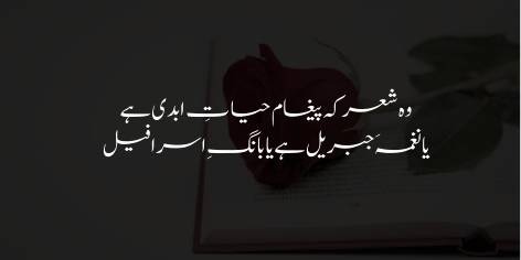 Iqbal ke nazdeek woh shayari jo insan ko hamesha rehne wali zindagi ka paigham deti hai, us mein do azeem sifat honi chahiyen. Ya to woh Hazrat Jibrail (A.S) ke naghme jaisi pakeeza aur ilhami ho, ya phir woh Hazrat Israfeel (A.S) ki awaaz ki manind ho jo murda qoumon mein zindagi ki lehar dauda de aur unhein ghaflat ki neend se bidaar kar de. Sachi shayari wahi hai jo insan ko amal par uksaye.