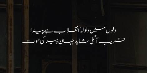 لیکن اب حالات بدل رہے ہیں۔ لوگوں کے دلوں میں ایک نئے انقلاب کا ولولہ اور جوش پیدا ہو رہا ہے۔ انسانیت اب ان پرانے نظاموں سے تھک چکی ہے۔ اقبال کہتے ہیں کہ اس جوش کو دیکھ کر لگتا ہے کہ اس “جہانِ پیر” (پرانی اور فرسودہ دنیا) کی موت اب قریب آ گئی ہے۔ ایک نئی دنیا جنم لینے والی ہے جہاں انسان کی خودی بھی بیدار ہوگی اور اس کا ضمیر بھی زندہ ہوگا۔