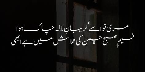 Iqbal farmate hain ke meri pukar aur meri shairi ki taseer se lala ke phool ka greban chaak ho gaya hai (yani ahl-e-nazar aur sahib-e-dil afraad ke dilon mein tarap paida ho gayi hai). Lekin abhi wo mukammal inqalab nahi aaya jis ki main tamanna karta hoon. Naseem-e-subah abhi tak uss chaman ki talash mein hai jahan wo khul kar apna asar dikha sakay; yani abhi wo mahol paida nahi hua jahan poori qaum bedar ho sakay.
