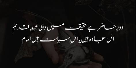 اقبال فرماتے ہیں کہ یہ جو ہمیں نظر آتا ہے کہ ہم ایک جدید دور میں جی رہے ہیں، حقیقت میں یہ وہی پرانا دور (عہدِ قدیم) ہی ہے۔ آج بھی وہی پرانے نظام رائج ہیں؛ فرق صرف اتنا ہے کہ پہلے مذہب کے نام پر “اہلِ سجادہ” (پیر و مرشد) لوگوں کو ذہنی طور پر غلام بناتے تھے اور آج “اہلِ سیاست” (سیاستدان) نئے نعروں کے ذریعے عوام پر حکمرانی کر رہے ہیں۔ قیادت کے چہرے بدل گئے ہیں، مگر عوام کی مجبوری اور غلامی وہی پرانی ہے۔