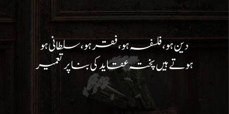 Chahe wo Mazhab (Deen) ho, sochne ka andaz (Falsafa) ho, faqiri-o-darveshi ho ya phir hukumat aur badshahi (Sultani)—ye tamam azeem amaratein sirf “Pukhta Aqaaid” ki banyad par tameer hoti hain. Agar kisi insan ya qaum ka iman aur yaqeen kamzor hai, to wo na to achha darvesh ban sakta hai aur na hi achha hukmaran. Mazboot yaqeen hi insan ke iradon mein jaan dalta hai.