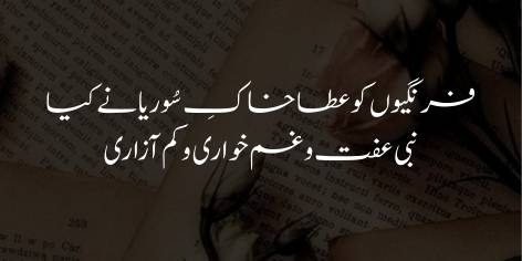 Nabi Iffat-o-Gham Khwari-o-Kam Azari