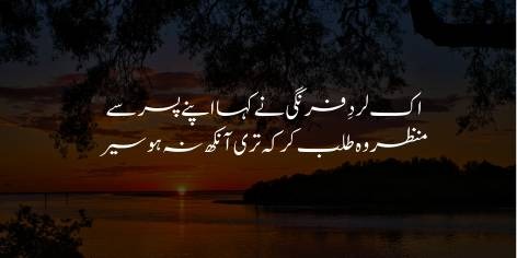 Ek angrez Lord apne bete se kehta hai ke tu aise nazara ki talash kar jis se teri aankh na bhare. Is ka matlab yeh hai ke woh apne bete mein mulk-geeri aur dunya par hukumat karne ki aisi pyaas paida karna chahta hai jo kabhi khatam na ho aur woh hamesha naye ilaqaon ko fatah karne ki dhun mein rahe.