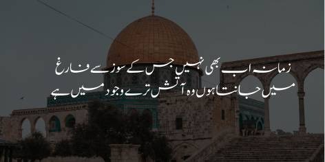 Allama Iqbal Filistini Arabon ko mukhatib kar ke kehte hain ke main janta hoon tumhare wujood mein ab bhi woh purani aatish maujood hai jis ne kabhi tareekh badal di thi. Yeh wahi imani hararat hai jis ne bade bade takht ulat diye thay. Allama kehte hain ke tumhari azadi ka raaz tumhari isi fitri taqat aur jazbe mein posheeda hai, mehaz baton aur taqreeron se kuch hasil nahi hoga.