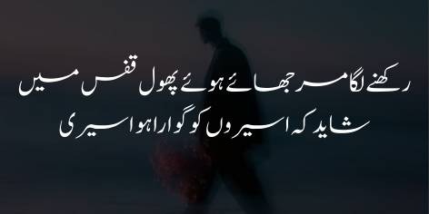 Ab iss shikari (haakim) ne pinjre ke andar murjhaye hue phool rakhne shuru kar diye hain, taake qaidiyon ko in masnooi khoobsurtiyon mein uljha kar apni ghulami ka ehsas na rahe aur wo aseeri (qaid) ko khushi se qabool kar lein.