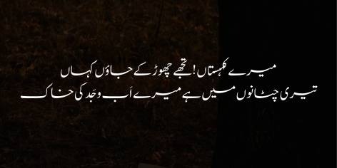 Ae mere paharon aur waadiyon! Mein tumhein chhor kar kahan jaon? Tumhari in sakht chitanon ke andar mere aaba-o-ajdad ki khaak basi hui hai. Ye sirf zameen ka tukra nahi balkay meri tareekh aur meri jaron ka ameen hai.