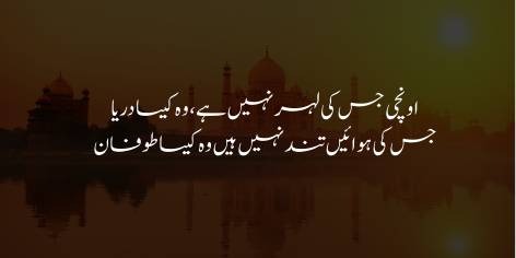 Jis darya mein lehrein nahi aur jis tufan mein tezi nahi, woh be-mani hai. Tu apne andar wohi josh-o-jazba paida kar takay teri pehchan bane. Tere andar sab salahiyatain maujood hain, bas unhein amal mein lane ki zaroorat hai.
