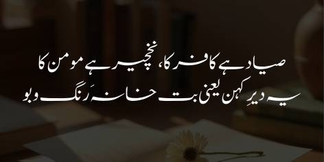 Ye purani dunya (but-khana-e-rang-o-bu) kafir ke liye to ek shikari hai jo usay apne jaal mein phansa leti hai, lekin Momin ke liye ye ek shikar hai jisay wo apni taskheer se tabay kar leta hai.
