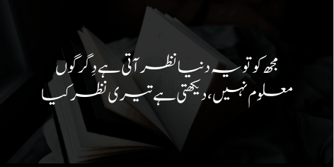 Mujhe to yeh dunya badli hui nazar aa rahi hai. Purani aqdar khatam ho rahi hain. Allama apne mukhatib se puchte hain ke kya tumhari nazar bhi is tabdeeli ko dekh rahi hai ya tum ab bhi ghaflat mein ho?