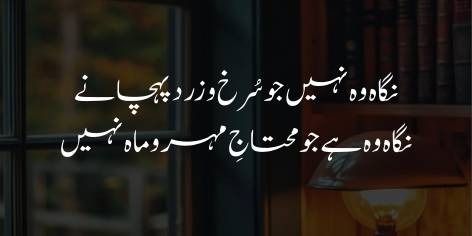 حقیقی نگاہ وہ نہیں جو صرف ظاہری رنگوں (سرخ و زرد) کی پہچان کرے، بلکہ اصل بصیرت وہ ہے جو مادی روشنی (سورج اور چاند) کی محتاج نہ ہو؛ یعنی وہ جو اشیاء کی حقیقت اور روح کو دیکھ سکے۔