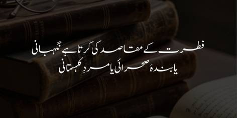 Fitrat ke bade maqasid ki hifazat ya to sehra ka rehne wala karta hai ya pahadon ka rehne wala mard-e-kuhistani. Kyunke un ki zindagi banawat se pak aur haqiqat ke qareeb hoti hai.