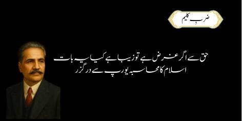 Hum in ‘Isayi-nawaz’ (kaleesa-nawaz) molviyon se poochte hain ke agar mashriq ke kamzoron ka apni hifazat ke liye larna ‘burayi’ (shar) hai, to phir maghrib ke zalimon ka khoon bahana ‘khair’ kaise ho gaya? Agar jang buri cheez hai, to woh sab ke liye buri honi chahiye, chahe woh mashriq ho ya maghrib.