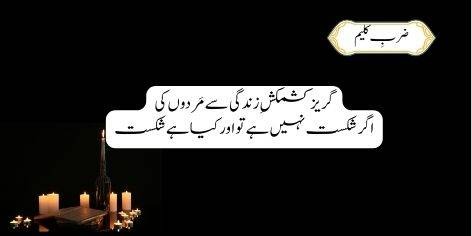 Mardon ke liye zindagi ki mushkilat aur maarkon se bhagna buzdili ki alamat hai. Agar koi shakhs zindagi ki kashmakash se darr kar amli maidan chorr deta hai, to yehi us ki sab se badi shikast aur haar hai.