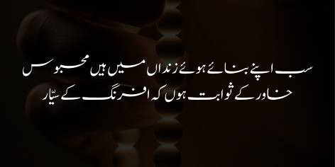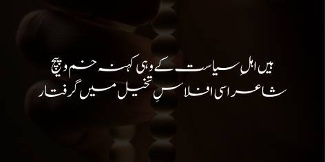 Siyasat-danon ka wohi purana haal hai ke woh ab bhi purani chaalon aur fareb-kariyon mein uljhe hue hain, jabke sha’iron ki soch itni baanjh aur ghareeb ho chuki hai ke un ke pas ab koi buland aur naya takhayyul (khayal) baqi nahin raha.