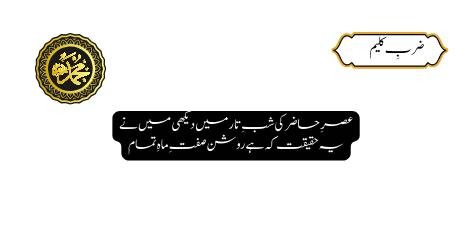 Maujooda dour ki gumraahi aur be-amli ki andheri raat mein, mujh par ek haqiqat chaudhween ke chaand ki tarah bilkul saaf aur wazeh ho kar zahir hui hai. Is sachayi mein kisi shak-o-shubha ki gunjayish nahi hai.