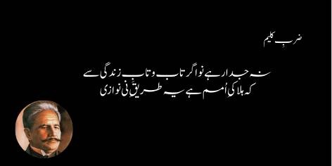Kisi bhi qoum ke shayar ya funkar ko zindagi ki jiddo-jehad aur tarap se alag nahi hona chahiye. Agar woh funkar jo qoum ko rasta dikhata hai, zindagi ki talkhiyon se bhaag kar sirf khayali aur kamzor naghme gane lage, to aisi buzdilana funkari qoumon ki tabahi ka paigham ban jati hai.